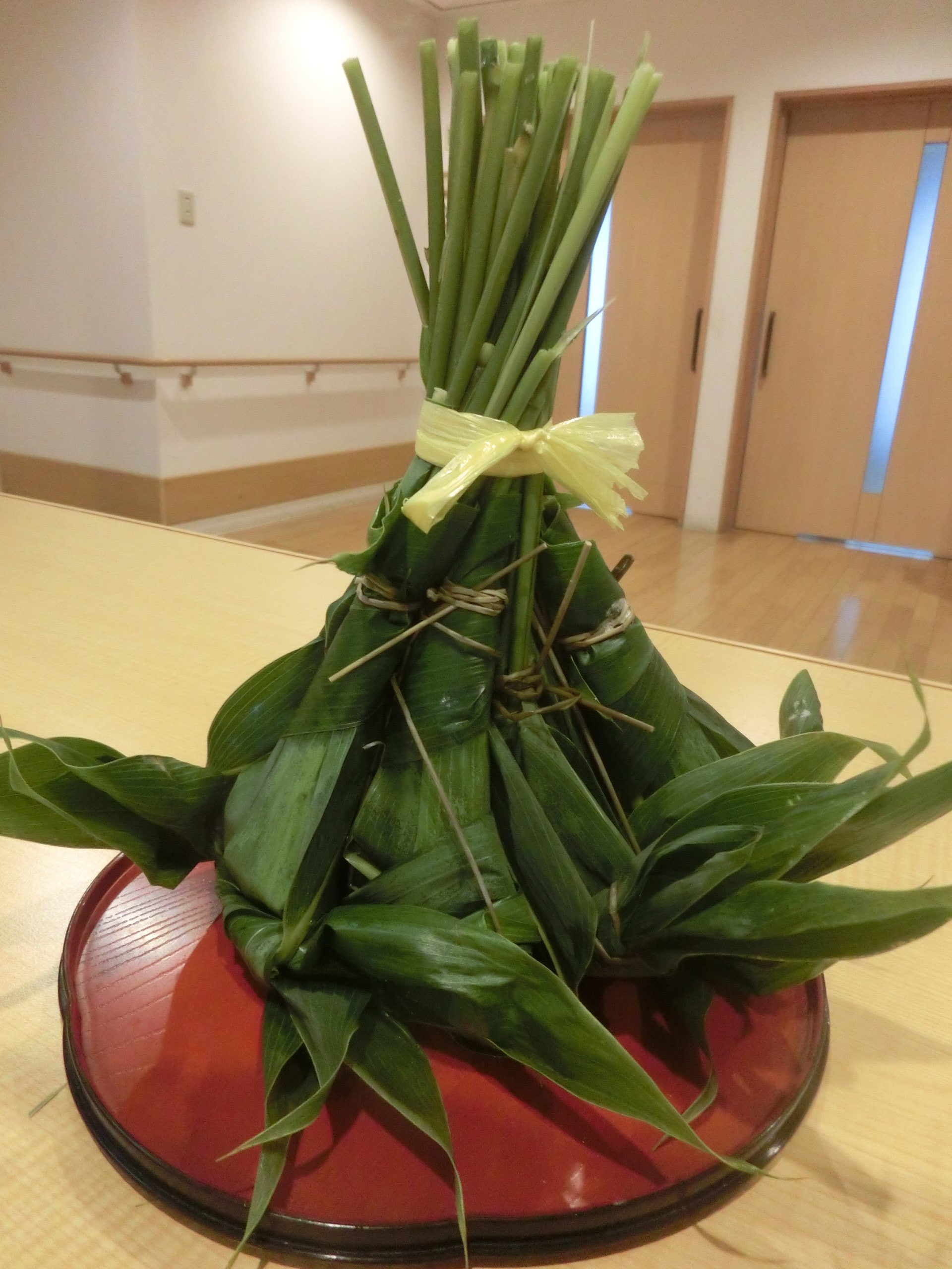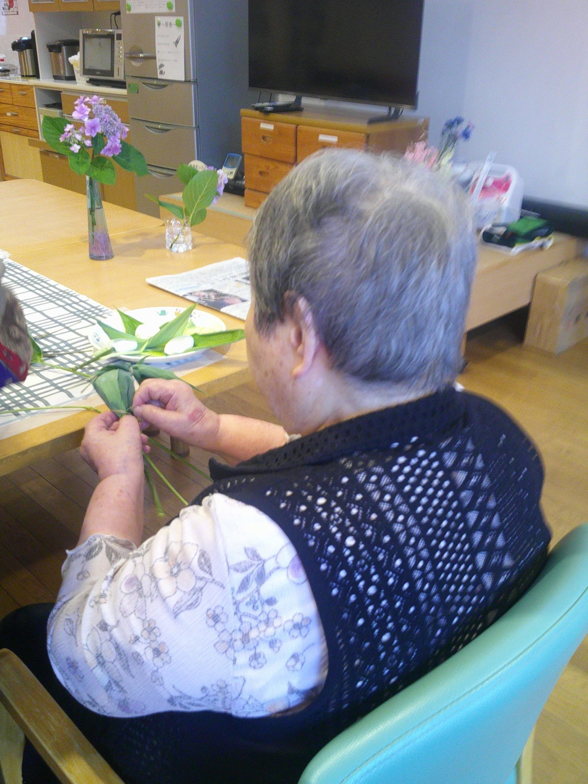 令和7年6月16日に笹巻を行いました。午前中に利用者様と笹の仕分け作業を行いました。
