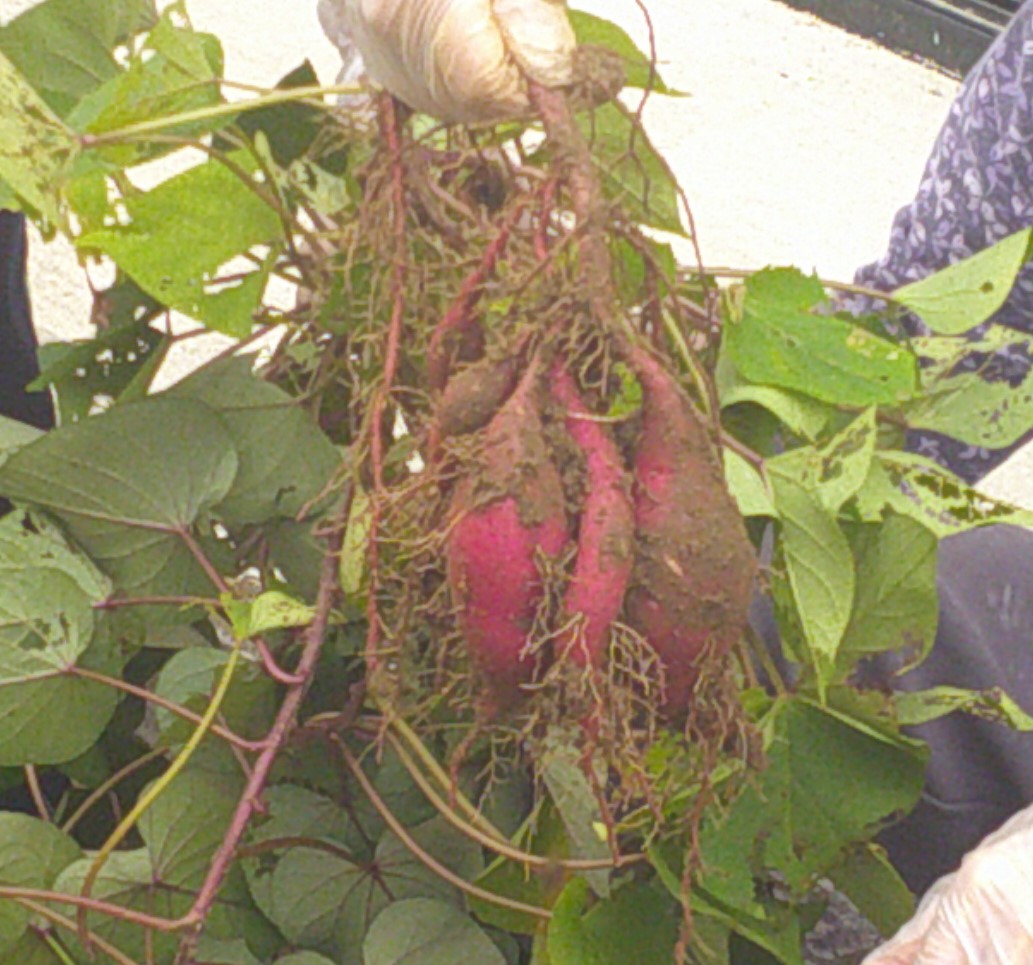 春から大事に育てたサツマイモを掘りました。かわいらしいお芋が数個 (笑)