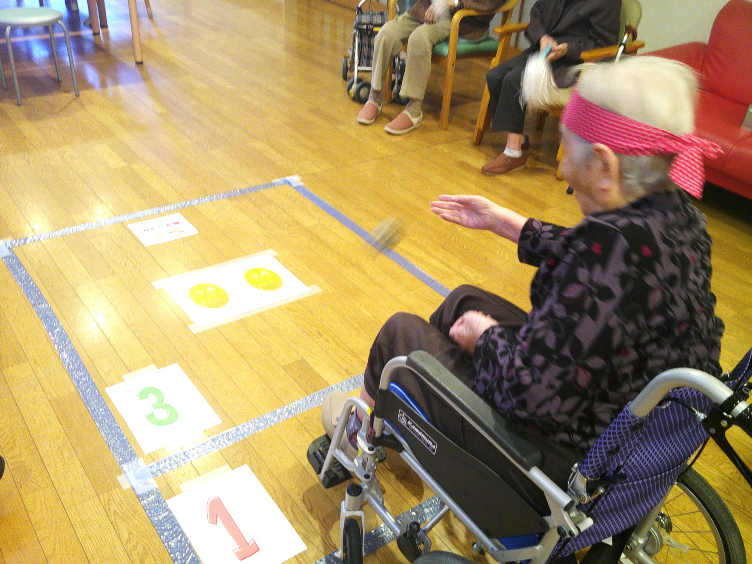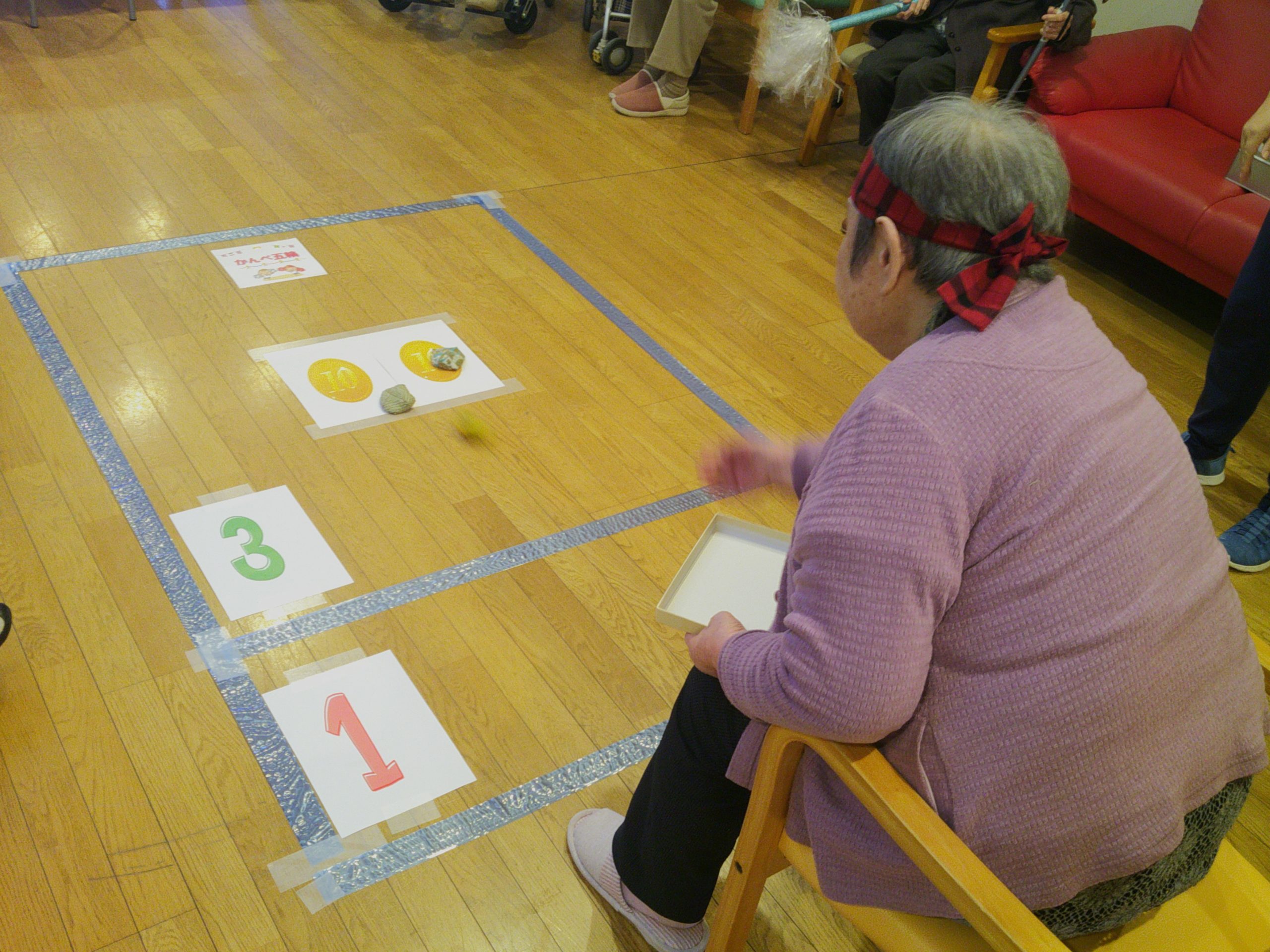 皆さん張り切って指定の枠の中へお手玉を投げておられました。